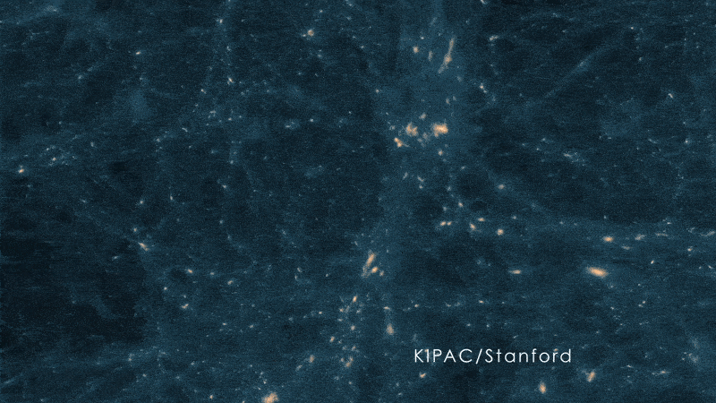 The map reveals a vast, web-like structure formed by dark matter, with dense concentrations surrounding galaxy clusters and thinner filaments stretching between them. Scientists believe that dark matter’s gravitational force pulled gas and dust toward these regions, creating the conditions necessary for galaxies to form and evolve.