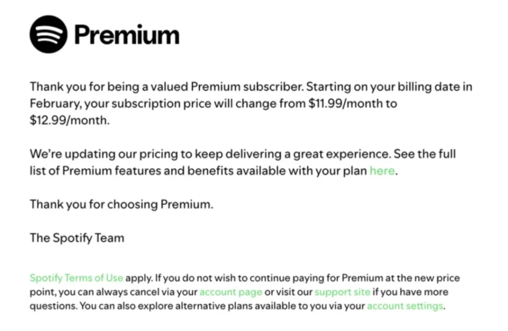 In its announcement, Spotify said that “periodic pricing updates across our markets reflect the value we deliver,” adding that the changes help the company continue improving the service and supporting artists. In emails sent to subscribers, Spotify framed the increase as necessary “to keep delivering a great experience.”